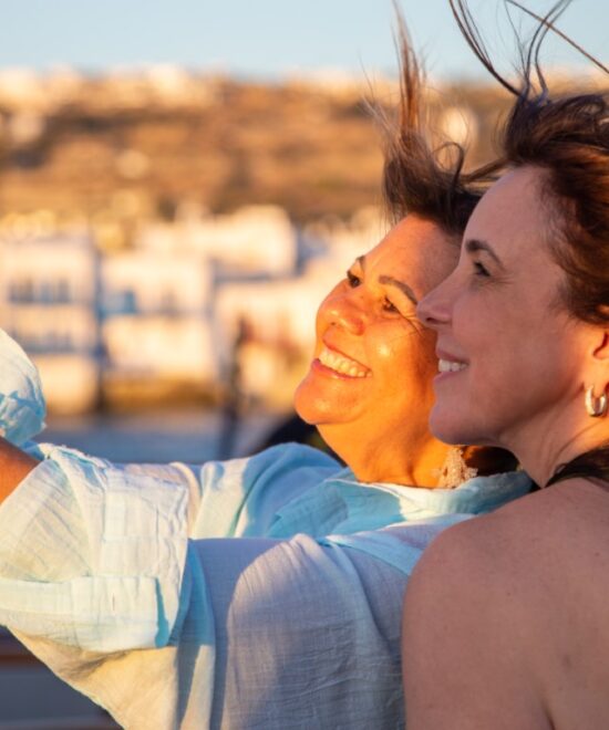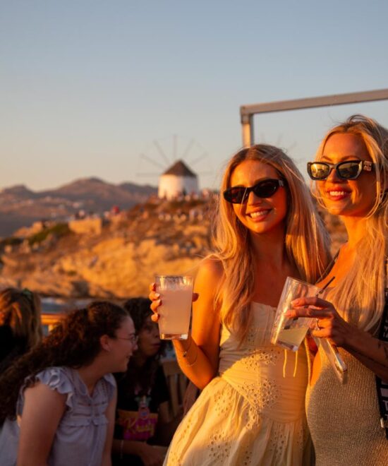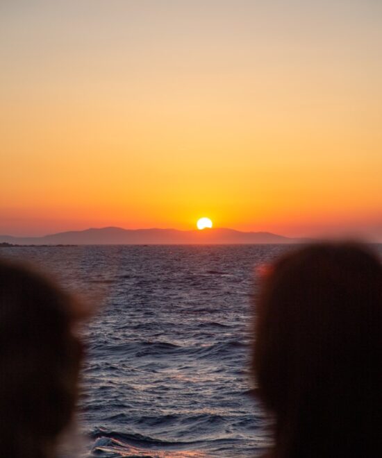 At around 20:45 we’ll start the trip back to Mykonos Old Port after a memory-lasting evening!